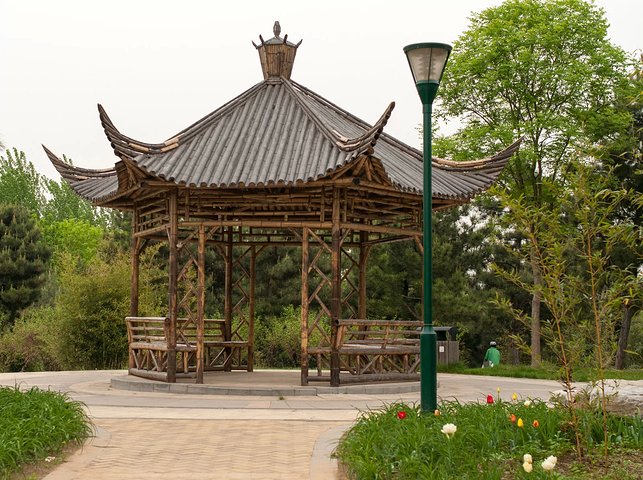 古代中國(guó)建筑是木結(jié)構(gòu)體系的建筑,所以涼亭也大多是木結(jié)構(gòu)的。木構(gòu)的涼亭,以木構(gòu)架琉璃瓦頂和木構(gòu)黛瓦頂兩種形式最為常見。前者為皇家建筑和壇廟宗教建筑中所特有,富麗堂皇,色彩濃艷。而后者則是中國(guó)古典亭榭的主導(dǎo),或質(zhì)樸莊重,或典雅清逸,遍及大江南北,是中國(guó)古典涼亭的代表形式。