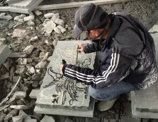 (浮雕雕刻之前需要在石材上繪出相應(yīng)圖案)