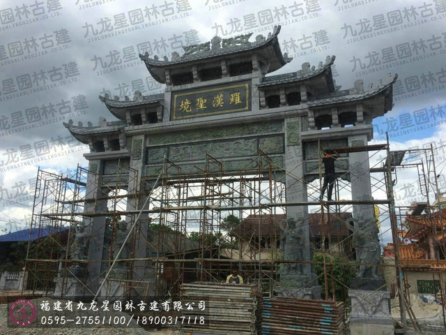 石雕牌坊定制-看九龍星園林古建大師巧手打造
