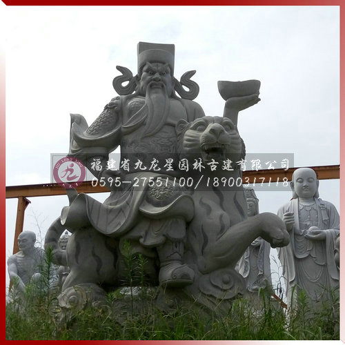 財神有文財神和武財神之分,文財神為比干,武財神為關羽和趙公明。武財神是漢族民間信仰的一位財神。關帝閣的武財神關羽手持青龍偃月刀,形象威武,義薄云天。趙公明一手拿元寶,一手拿長鞭。當今道教宮觀中的財神神像,多為黑面濃須,騎黑虎,一手執(zhí)銀鞭,一手持元寶,全副戎裝。該財神像當為財神,即趙公元帥像。趙公元帥,即趙公明、趙玄壇。供奉武財神寄托了漢族勞動人民一種祛邪、避災、祈福的美好愿望。