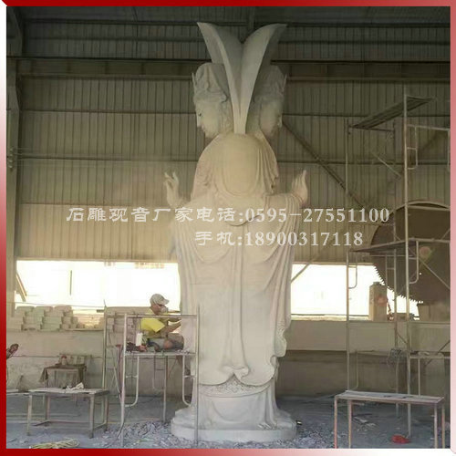 雙面石雕觀音佛像雕刻現(xiàn)場