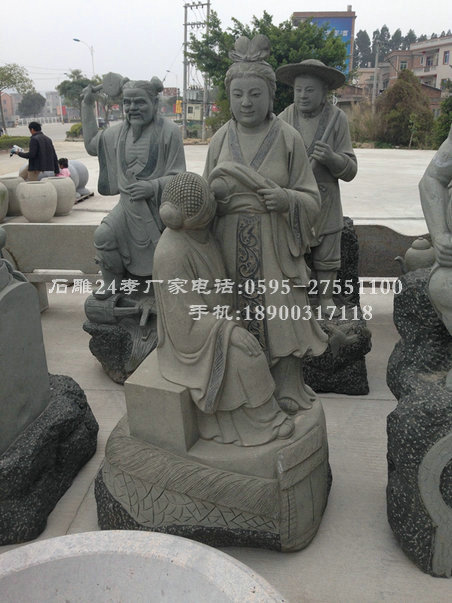 中國自古就有百善孝為先文化傳統(tǒng),我們將父母給予的一切視為是需要回報的情感, 是一種相互的愛。石雕二十四孝雕塑所述說的二十四個感人故事,更體現(xiàn)了中華民族博大的孝道底蘊.孝感動天,親嘗湯藥,嚙指痛心,百里負(fù)米,蘆衣順母……這些主人公都是叱咤歷史風(fēng)云的偉大人物,他們對人類的進步所做的貢獻(xiàn)或許不同,但相同的是他們都擁有一個孝心。