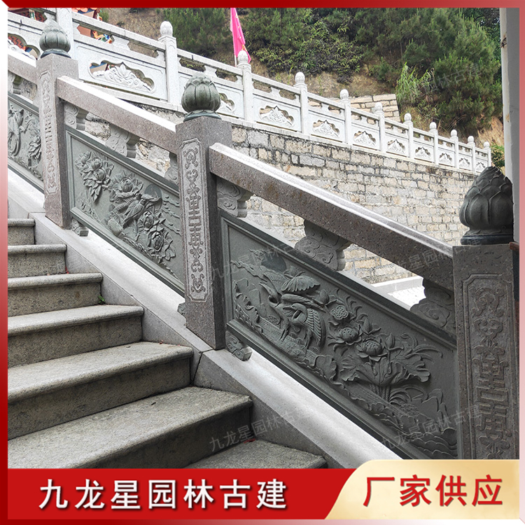 園林古建筑石欄桿具有很好的裝飾作用。石雕欄桿欄板上精美的浮雕圖案讓石欄桿更加的生動(dòng),更有觀賞價(jià)值。這些豐富多樣的石雕欄桿為園林古建筑的裝飾增強(qiáng)了濃厚的文化氣息。